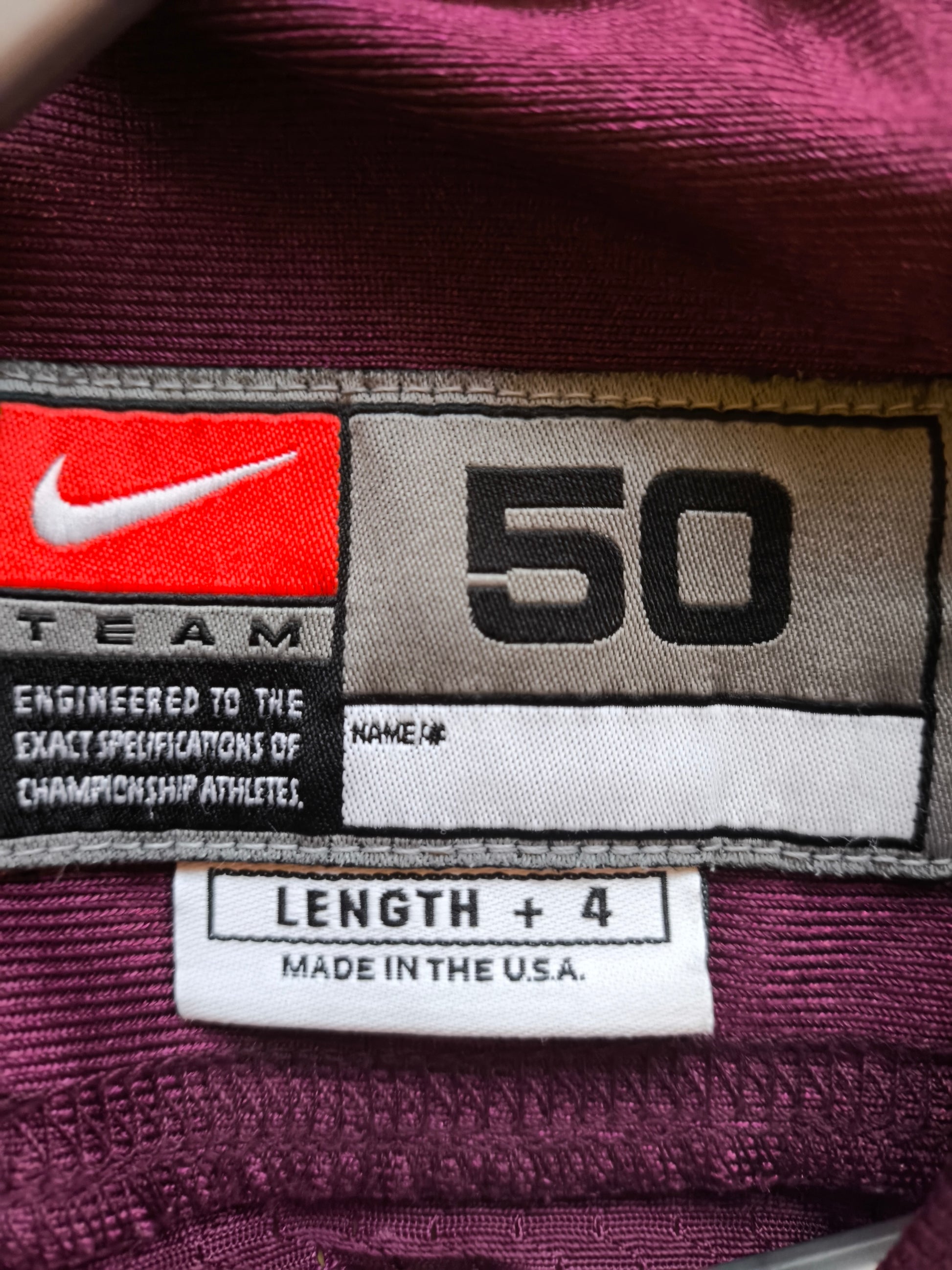 Professional on-field sizing (50 +4 length)